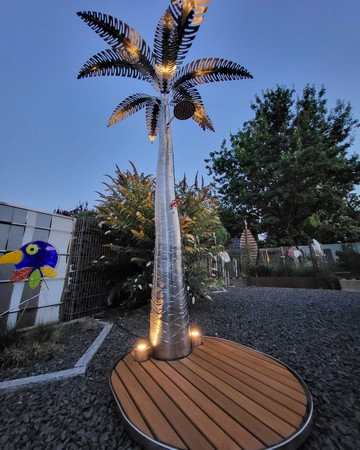 Diese Duschpalme aus Edelstahl ist genau dafür gemacht - mit Plattform,mit Beleuchtung und als echtes Highlight im Garten. Samt Wasserhahn für die Füße und Hände oder zum Blumengiessen- ca. 2,7m hoch