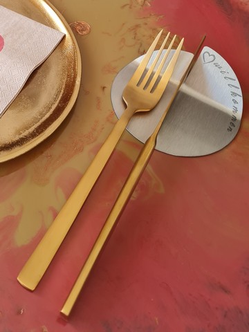 Edelstahlbesteckauflagen, eine aussergewöhnliche Tischdekoration, um Ihre Gäste auf besondere Art zu begrüßen. Ein Highlight auf Ihrem Tisch, um jedem Gast eine besondere Wertschätzung zukommen zu lassen und Ihre Tischdecke zu schützen. Der Durchmesser der Auflagen beträgt 90mm und ist in zwei Versionen erhältlich =Lieblingsgast= oder =herzlich willkommen=