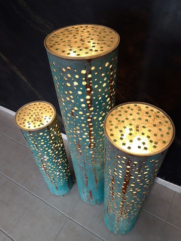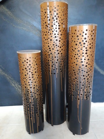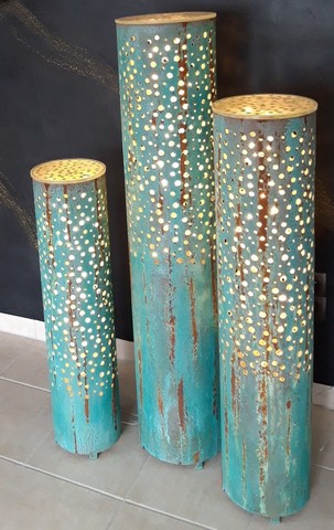 Der Größe der Zylinder beträgt (80*20cm; 100*22,5cm; 120*25cm). Aluminium unterschiedlich lackiert.