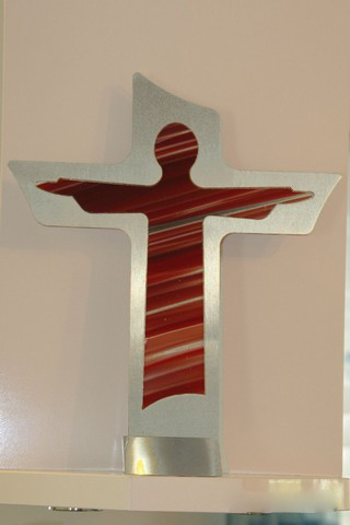 Kreuze für den Innenbereich, aus Edelstahl mit eingelegtem mundgeblasenen Flachglas. Dargestellte Farbauswahl nur exemplarisch, da jedes Kreuz ein Unikat ist. Größe 30cm hoch und 26cm breit. Zum aufhängen oder hinstellen (mit Edelstahlständer erhältlich).