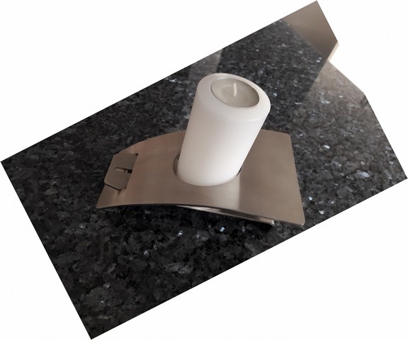Edelstahlkerzenständer mit Teelichthaltern in Kerzenform.